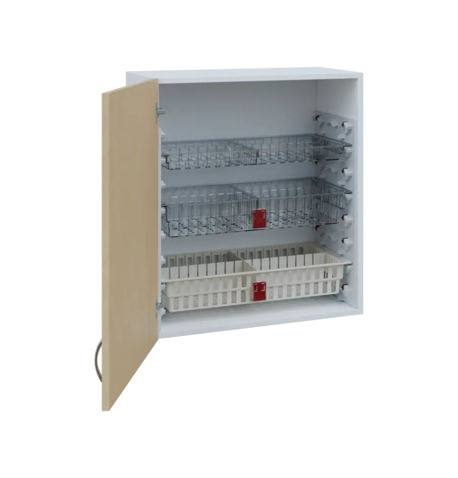 Nábytek EUROMEDICA je přímo dělaný pro koše MEDIBOX. Díky košům MEDIBOX budete mít přehledně uspořádané léky a zdravotnický materiál přesně dle Vašich potřeb. Koše jsou výsuvné, výklopné i vyjímatelné a můžete je libovolně přesouvat ve skříni i mezi skříněmi, regály a vozíky. Vše je přehledné, díky výsuvům výborně přístupné a maximálně využívá prostor. Příprava léků na výdej, jejich předání i převoz je nejjednodušší možný. Prostě box ze skříně dáte do vozíku a obráceně.