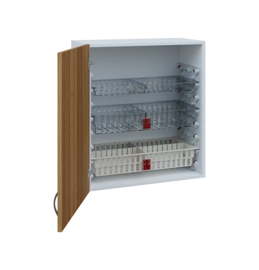Nábytek EUROMEDICA je přímo dělaný pro koše MEDIBOX. Díky košům MEDIBOX budete mít přehledně uspořádané léky a zdravotnický materiál přesně dle Vašich potřeb. Koše jsou výsuvné, výklopné i vyjímatelné a můžete je libovolně přesouvat ve skříni i mezi skříněmi, regály a vozíky. Vše je přehledné, díky výsuvům výborně přístupné a maximálně využívá prostor. Příprava léků na výdej, jejich předání i převoz je nejjednodušší možný. Prostě box ze skříně dáte do vozíku a obráceně.