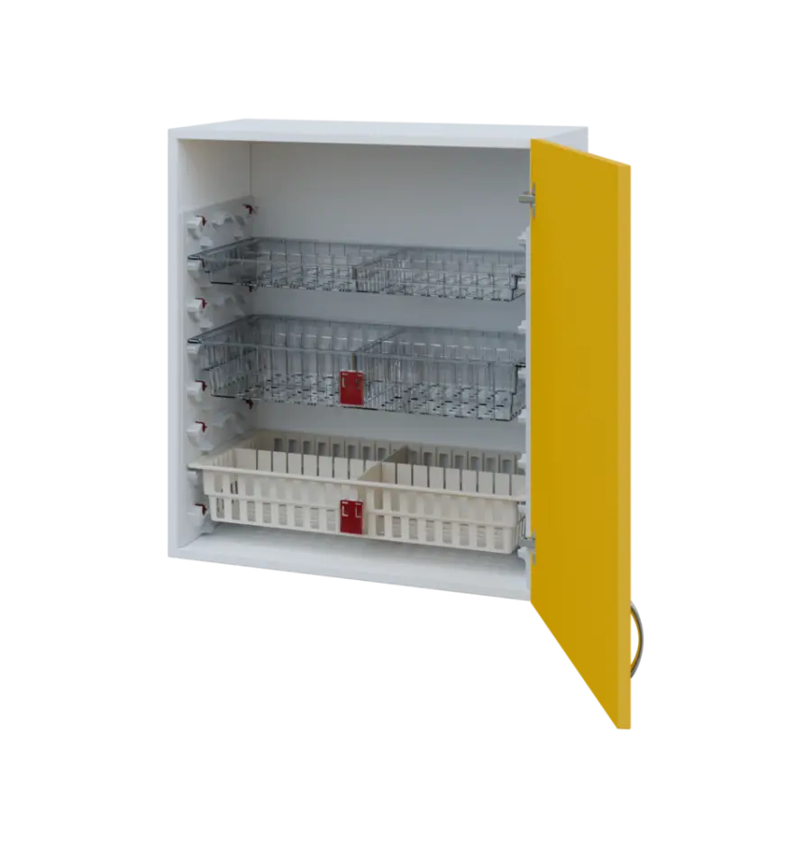 Nábytek EUROMEDICA je přímo dělaný pro koše MEDIBOX. Díky košům MEDIBOX budete mít přehledně uspořádané léky a zdravotnický materiál přesně dle Vašich potřeb. Koše jsou výsuvné, výklopné i vyjímatelné a můžete je libovolně přesouvat ve skříni i mezi skříněmi, regály a vozíky. Vše je přehledné, díky výsuvům výborně přístupné a maximálně využívá prostor. Příprava léků na výdej, jejich předání i převoz je nejjednodušší možný. Prostě box ze skříně dáte do vozíku a obráceně.