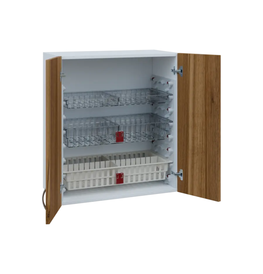 Nábytek EUROMEDICA je přímo dělaný pro koše MEDIBOX. Díky košům MEDIBOX budete mít přehledně uspořádané léky a zdravotnický materiál přesně dle Vašich potřeb. Koše jsou výsuvné, výklopné i vyjímatelné a můžete je libovolně přesouvat ve skříni i mezi skříněmi, regály a vozíky. Vše je přehledné, díky výsuvům výborně přístupné a maximálně využívá prostor. Příprava léků na výdej, jejich předání i převoz je nejjednodušší možný. Prostě box ze skříně dáte do vozíku a obráceně.