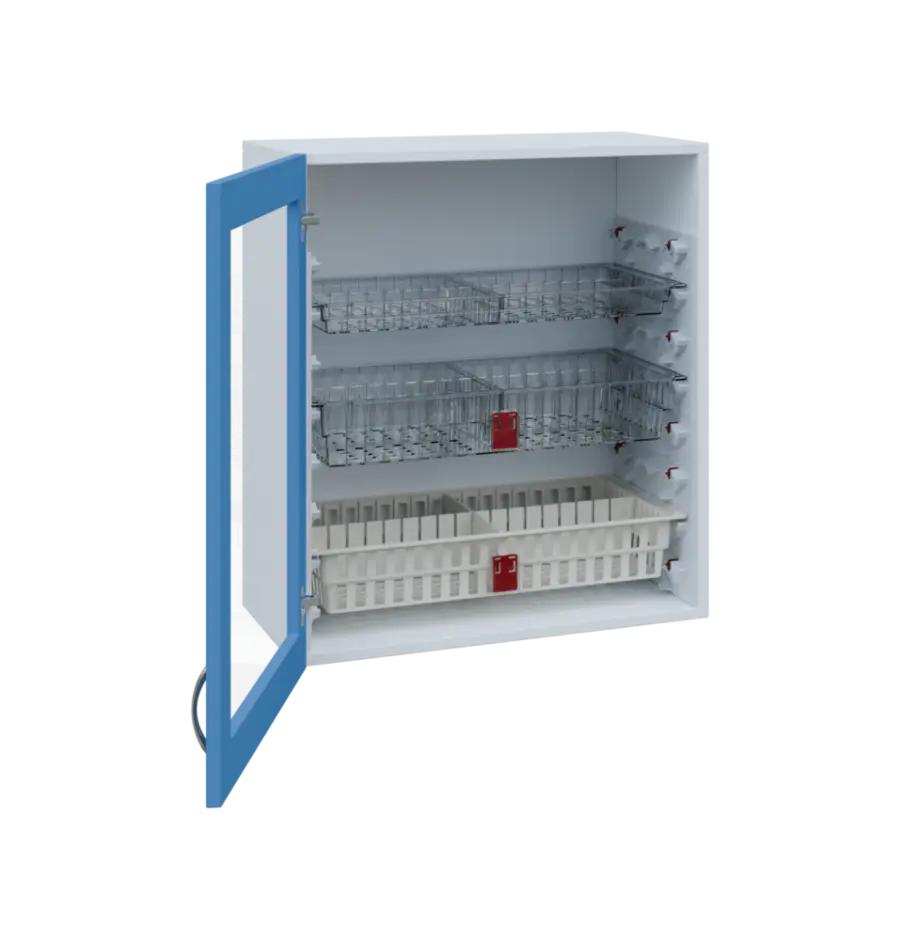 Nábytek EUROMEDICA je přímo dělaný pro koše MEDIBOX. Díky košům MEDIBOX budete mít přehledně uspořádané léky a zdravotnický materiál přesně dle Vašich potřeb. Koše jsou výsuvné, výklopné i vyjímatelné a můžete je libovolně přesouvat ve skříni i mezi skříněmi, regály a vozíky. Vše je přehledné, díky výsuvům výborně přístupné a maximálně využívá prostor. Příprava léků na výdej, jejich předání i převoz je nejjednodušší možný. Prostě box ze skříně dáte do vozíku a obráceně.