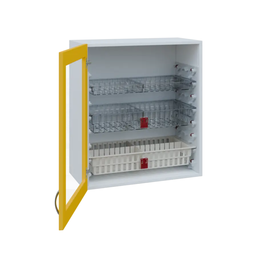 Nábytek EUROMEDICA je přímo dělaný pro koše MEDIBOX. Díky košům MEDIBOX budete mít přehledně uspořádané léky a zdravotnický materiál přesně dle Vašich potřeb. Koše jsou výsuvné, výklopné i vyjímatelné a můžete je libovolně přesouvat ve skříni i mezi skříněmi, regály a vozíky. Vše je přehledné, díky výsuvům výborně přístupné a maximálně využívá prostor. Příprava léků na výdej, jejich předání i převoz je nejjednodušší možný. Prostě box ze skříně dáte do vozíku a obráceně.