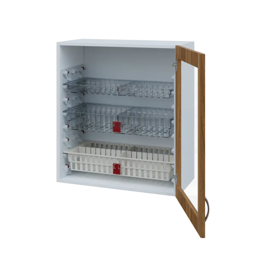 Nábytek EUROMEDICA je přímo dělaný pro koše MEDIBOX. Díky košům MEDIBOX budete mít přehledně uspořádané léky a zdravotnický materiál přesně dle Vašich potřeb. Koše jsou výsuvné, výklopné i vyjímatelné a můžete je libovolně přesouvat ve skříni i mezi skříněmi, regály a vozíky. Vše je přehledné, díky výsuvům výborně přístupné a maximálně využívá prostor. Příprava léků na výdej, jejich předání i převoz je nejjednodušší možný. Prostě box ze skříně dáte do vozíku a obráceně.