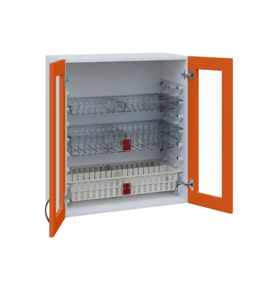 Nábytek EUROMEDICA je přímo dělaný pro koše MEDIBOX. Díky košům MEDIBOX budete mít přehledně uspořádané léky a zdravotnický materiál přesně dle Vašich potřeb. Koše jsou výsuvné, výklopné i vyjímatelné a můžete je libovolně přesouvat ve skříni i mezi skříněmi, regály a vozíky. Vše je přehledné, díky výsuvům výborně přístupné a maximálně využívá prostor. Příprava léků na výdej, jejich předání i převoz je nejjednodušší možný. Prostě box ze skříně dáte do vozíku a obráceně.