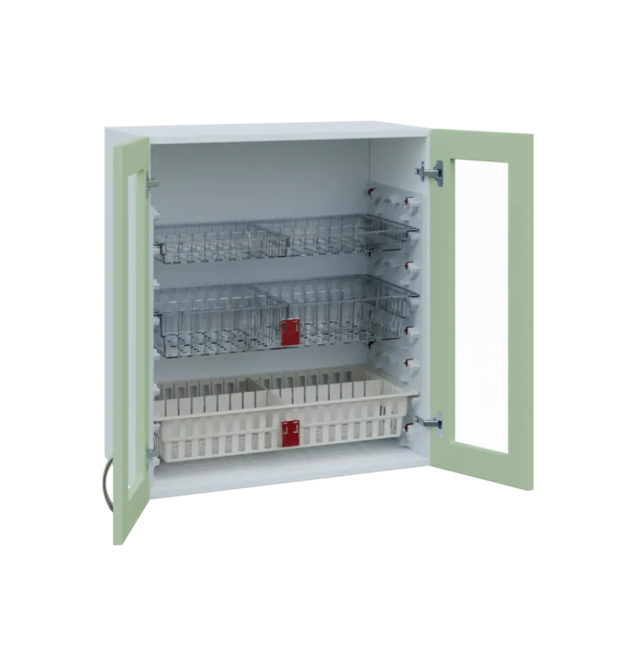 Nábytek EUROMEDICA je přímo dělaný pro koše MEDIBOX. Díky košům MEDIBOX budete mít přehledně uspořádané léky a zdravotnický materiál přesně dle Vašich potřeb. Koše jsou výsuvné, výklopné i vyjímatelné a můžete je libovolně přesouvat ve skříni i mezi skříněmi, regály a vozíky. Vše je přehledné, díky výsuvům výborně přístupné a maximálně využívá prostor. Příprava léků na výdej, jejich předání i převoz je nejjednodušší možný. Prostě box ze skříně dáte do vozíku a obráceně.