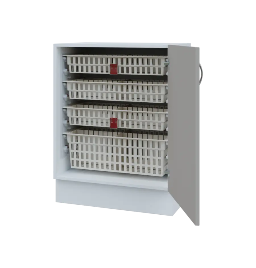 Nábytek EUROMEDICA je přímo dělaný pro koše MEDIBOX. Díky košům MEDIBOX budete mít přehledně uspořádané léky a zdravotnický materiál přesně dle Vašich potřeb. Koše jsou výsuvné, výklopné i vyjímatelné a můžete je libovolně přesouvat ve skříni i mezi skříněmi, regály a vozíky. Vše je přehledné, díky výsuvům výborně přístupné a maximálně využívá prostor. Příprava léků na výdej, jejich předání i převoz je nejjednodušší možný. Prostě box ze skříně dáte do vozíku a obráceně.