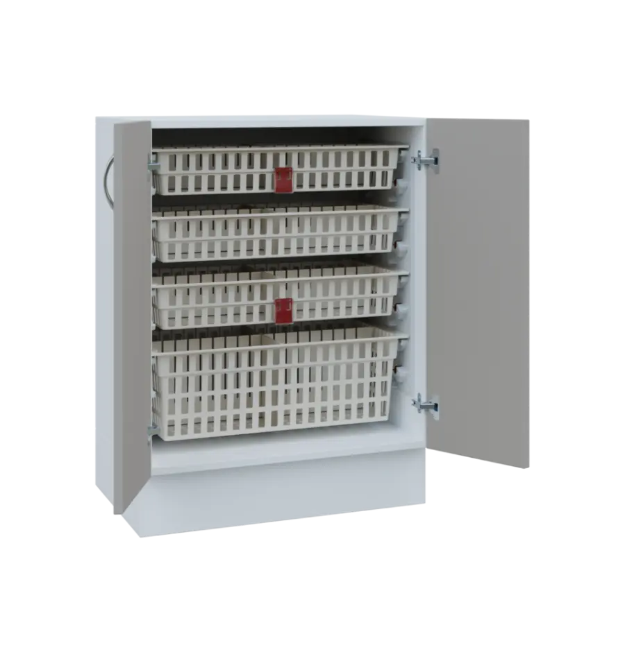 Nábytek EUROMEDICA je přímo dělaný pro koše MEDIBOX. Díky košům MEDIBOX budete mít přehledně uspořádané léky a zdravotnický materiál přesně dle Vašich potřeb. Koše jsou výsuvné, výklopné i vyjímatelné a můžete je libovolně přesouvat ve skříni i mezi skříněmi, regály a vozíky. Vše je přehledné, díky výsuvům výborně přístupné a maximálně využívá prostor. Příprava léků na výdej, jejich předání i převoz je nejjednodušší možný. Prostě box ze skříně dáte do vozíku a obráceně.