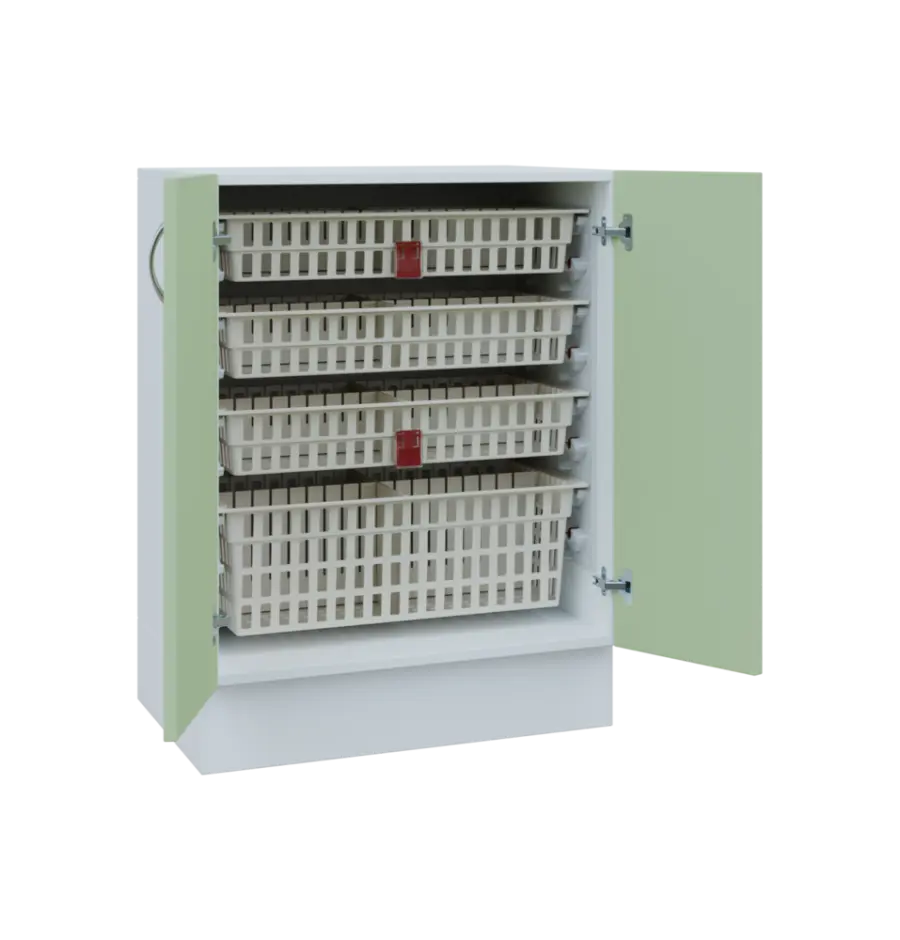 Nábytek EUROMEDICA je přímo dělaný pro koše MEDIBOX. Díky košům MEDIBOX budete mít přehledně uspořádané léky a zdravotnický materiál přesně dle Vašich potřeb. Koše jsou výsuvné, výklopné i vyjímatelné a můžete je libovolně přesouvat ve skříni i mezi skříněmi, regály a vozíky. Vše je přehledné, díky výsuvům výborně přístupné a maximálně využívá prostor. Příprava léků na výdej, jejich předání i převoz je nejjednodušší možný. Prostě box ze skříně dáte do vozíku a obráceně.