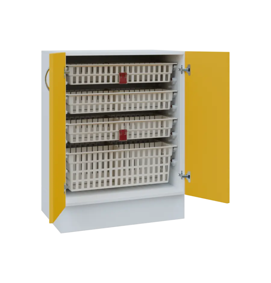 Nábytek EUROMEDICA je přímo dělaný pro koše MEDIBOX. Díky košům MEDIBOX budete mít přehledně uspořádané léky a zdravotnický materiál přesně dle Vašich potřeb. Koše jsou výsuvné, výklopné i vyjímatelné a můžete je libovolně přesouvat ve skříni i mezi skříněmi, regály a vozíky. Vše je přehledné, díky výsuvům výborně přístupné a maximálně využívá prostor. Příprava léků na výdej, jejich předání i převoz je nejjednodušší možný. Prostě box ze skříně dáte do vozíku a obráceně.