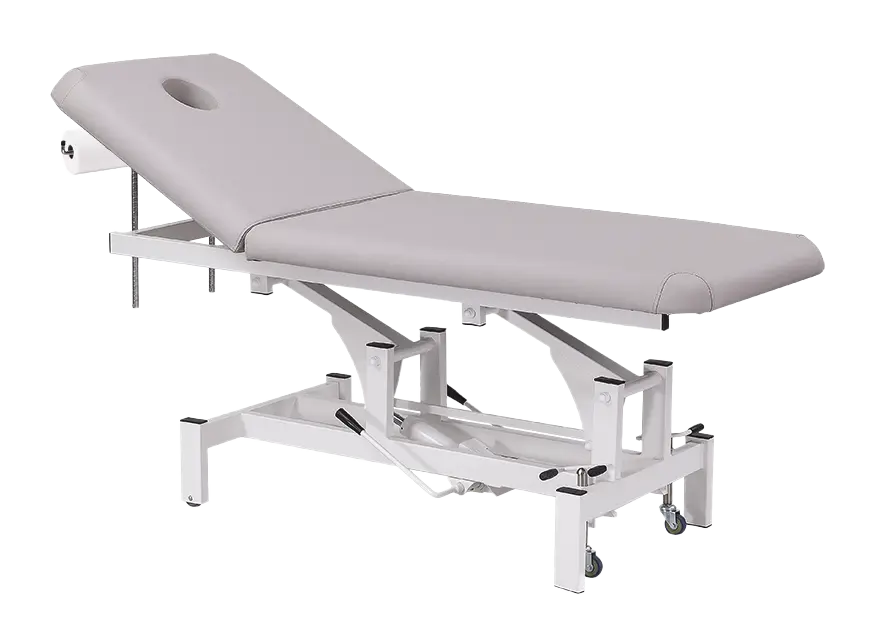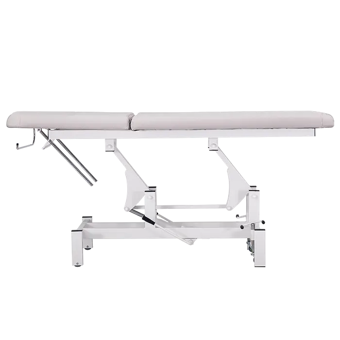 2-segmentové lehátko s hydraulickým nastavením výšky stolu, kovová konstrukce opatřena bílým práškovým lakem, nosnost 180 kg