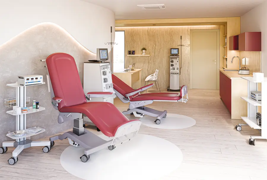 multifunkční ošetřovací křeslo MEDI MULTI je určena pro dlouhodobou dialýzu, chemoterapii a hematologii