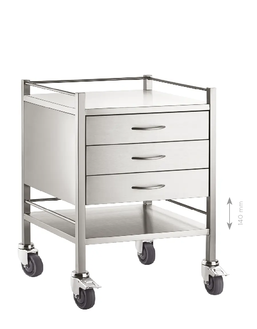 celonerezový vozík se 2 zásuvkami, provedení zásuvek nerez či prášková barva
