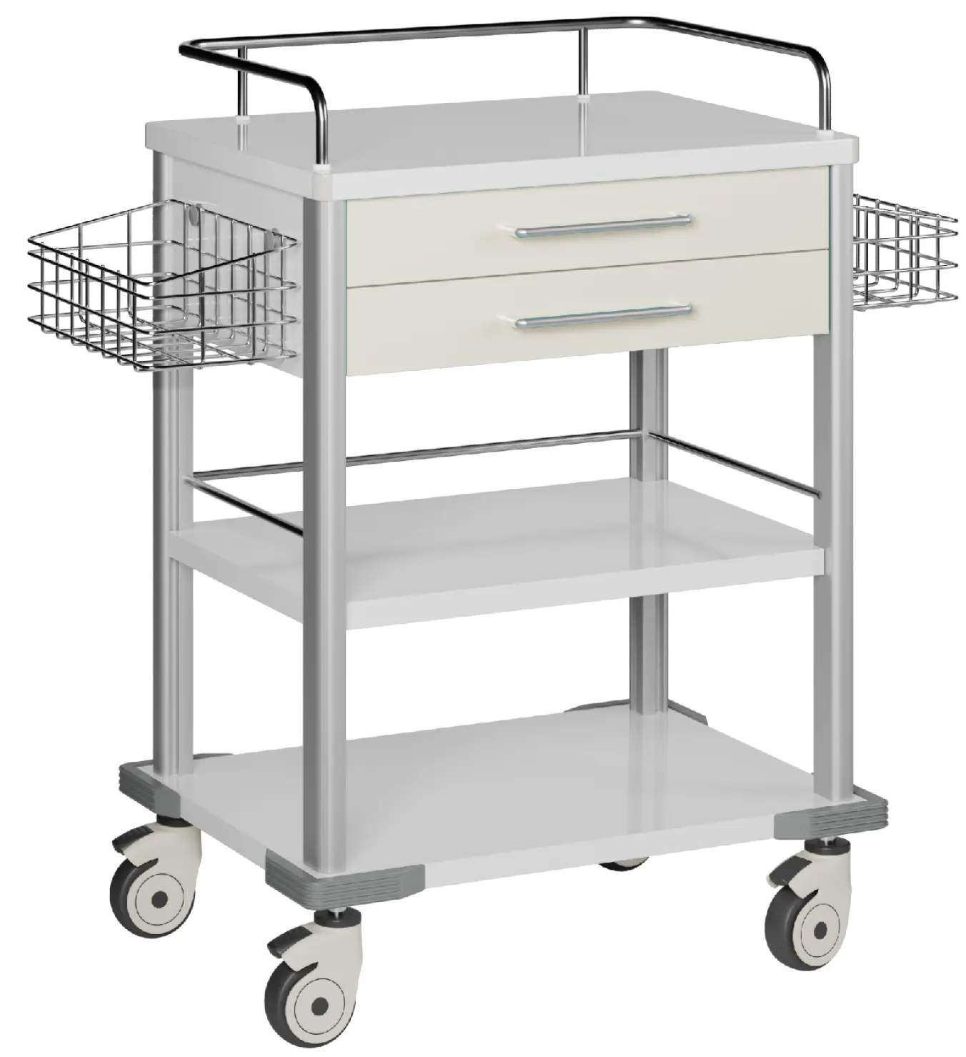 MEDISAN 02, zdravotnický vozík, 2-zásuvkový, kovový, bílý