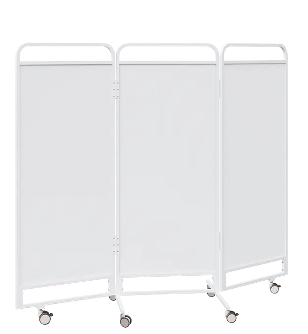 stabilní mobilní zástěna 3 dílná, stabilní pevná nerezová konstrukce s odolnou plastovou výplní o tl. 5 mm v bílém provedení