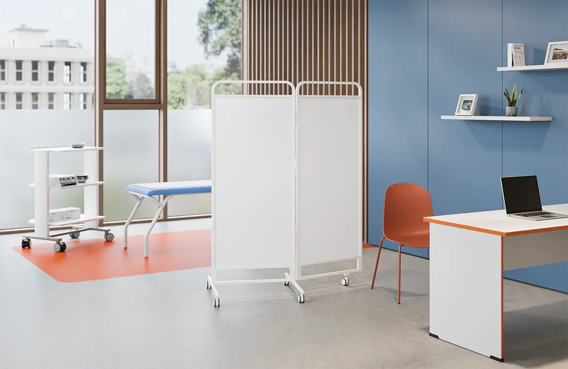 MEDIVAN LAK 3, zástěna 3 -dílná, kovová konstrukce, výplň plastová, bílá/bílá