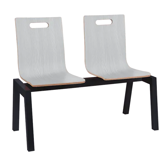 čekárenská lavice s překližkovými sedáky a svařovanou robustní ocelovou kostrou v černém laku