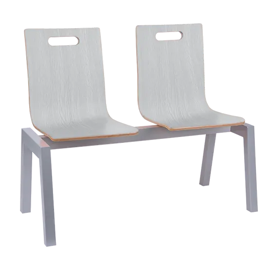 čekárenská lavice s překližkovými sedáky a svařovanou robustní ocelovou kostrou ve stříbrném laku