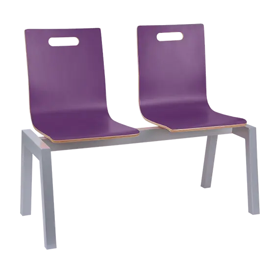 čekárenská lavice s překližkovými sedáky a svařovanou robustní ocelovou kostrou ve stříbrném laku