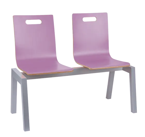 čekárenská lavice s překližkovými sedáky a svařovanou robustní ocelovou kostrou ve stříbrném laku