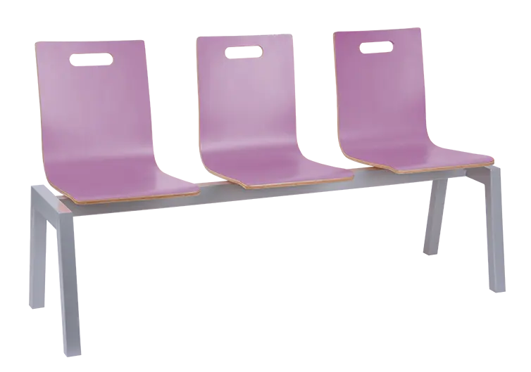 čekárenská lavice s překližkovými sedáky a svařovanou robustní ocelovou kostrou ve stříbrném laku