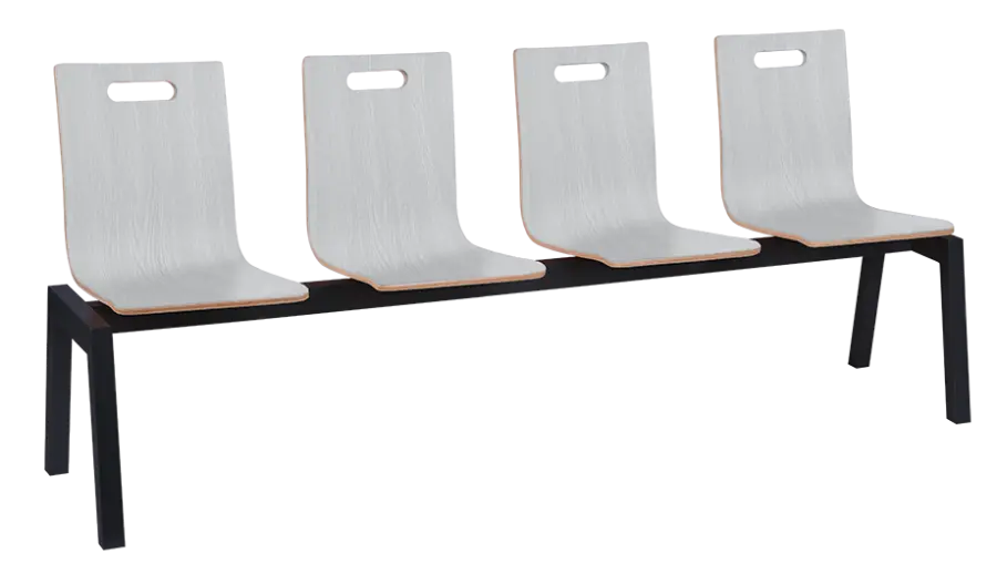 čekárenská lavice s překližkovými sedáky a svařovanou robustní ocelovou kostrou v černém laku