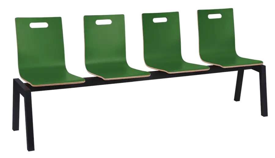 čekárenská lavice s překližkovými sedáky a svařovanou robustní ocelovou kostrou v černém laku
