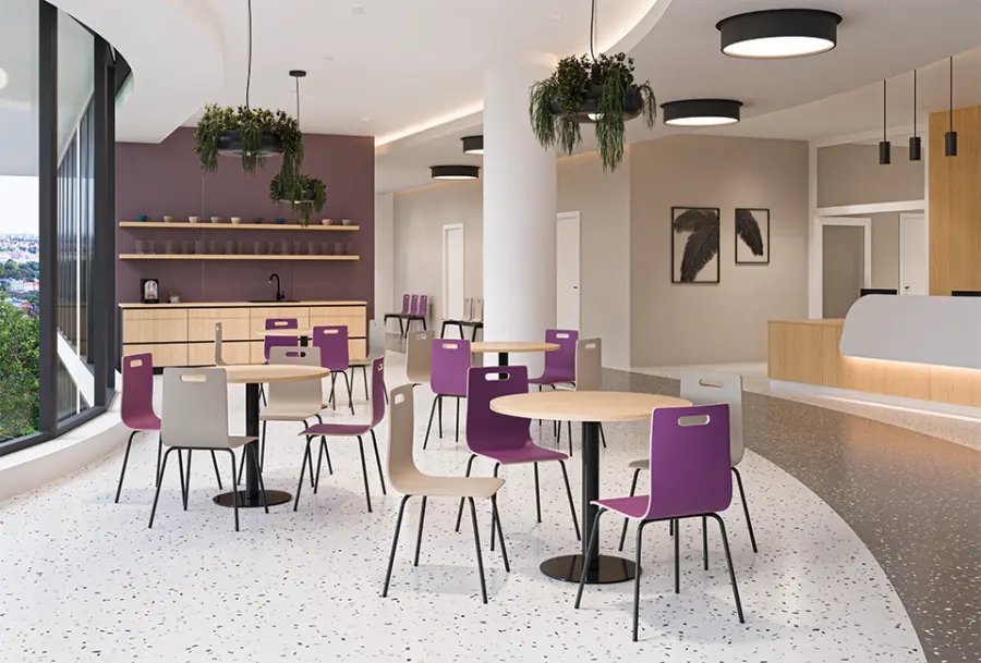 stohovatelné překližkové židle, sedák a opěrák z laminované bukové překližky, plastové kluzáky