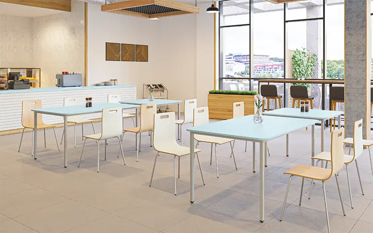 stohovatelné překližkové židle, sedák a opěrák z laminované bukové překližky, plastové kluzáky