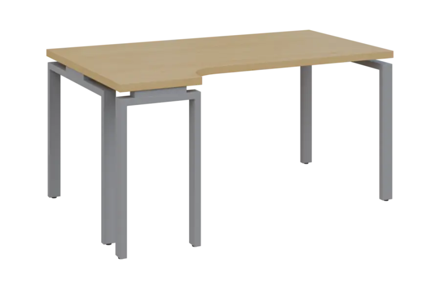 MHRK 38 - 164 stůl kancelářský, rohový, levý, kovová podnož stříbrná, deska 36 mm, široký 1600 mm, javor horský