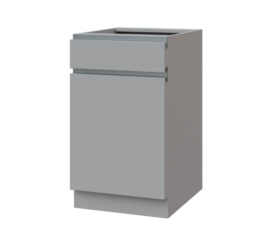 Kuchyňka reprezentuje firmu u zaměstnanců i návštěv. Nábytková řada MEDI HIDE obsahuje prémiové kování BLUM s lehkým a tichým chodem a s bezúchytkovým otevírání přes nerezové profily v korpusu. Neobsahuje pracovní desku viz popis.