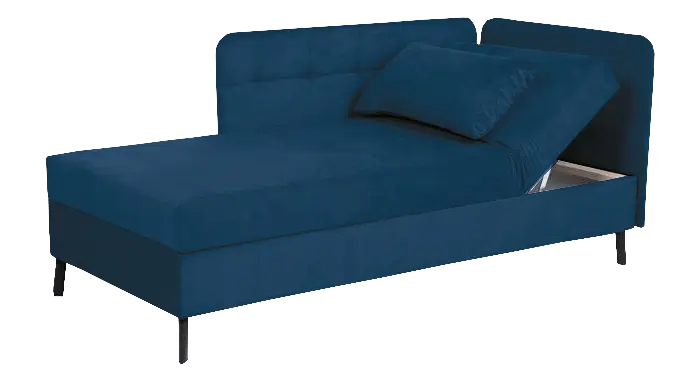 celočalouněná pohovka s úložným prostorem, čalouněná opěrná deska s elegantním proševem v hlavové a boční části, hlavová část polohovatelná až do úhlu 40°