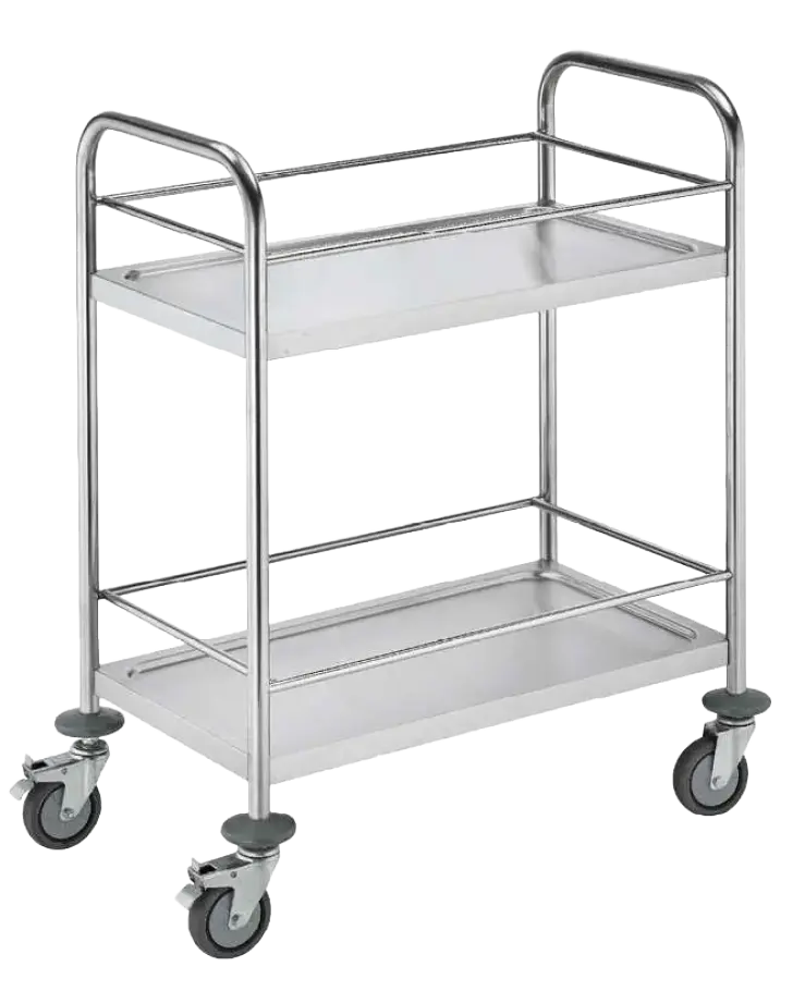 celonerezový 2-policový vozík s ohrádkou, police s prolisem a zaoblenými rohy