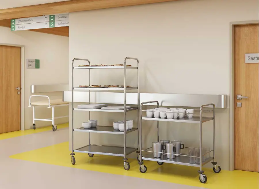celonerezový 5-policový vozík, police s prolisem a zaoblenými rohy