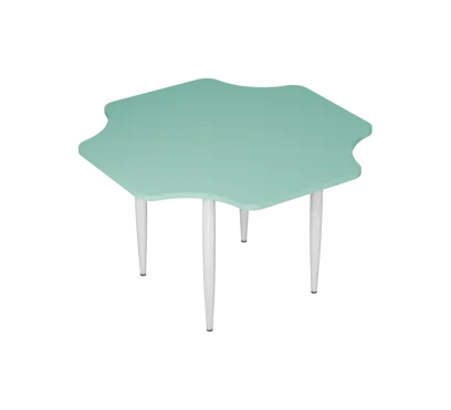 hravé/variabilní/modulární stoly, velké množství kombinací tvarů a barev kreativně rozehrají Váš prostor, kovové nohy, bílý lak