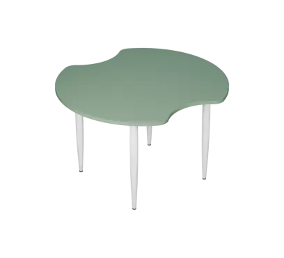 hravé/variabilní/modulární stoly, velké množství kombinací tvarů a barev kreativně rozehrají Váš prostor, kovové nohy, bílý lak