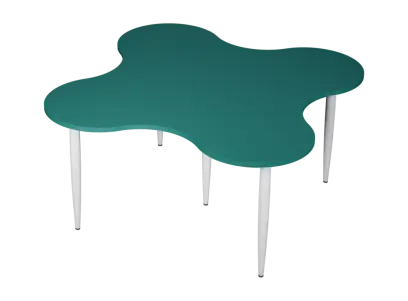 hravé/variabilní/modulární stoly, velké množství kombinací tvarů a barev kreativně rozehrají Váš prostor, kovové nohy, bílý lak