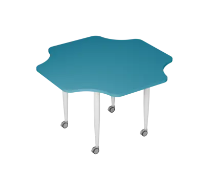 PLAYFORM 214 K modulární hravé stoly, mobilní, výška 750 mm, kovová podnož bílá, deska 25 mm, jezerní modrá