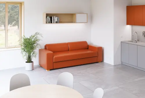 celočalouněná pohovka určena pro trvalé spaní, nižší područky po obou stranách pohovky