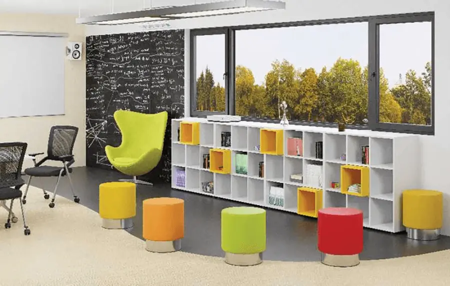 válcový taburet čalouněný v barevné ekologické kůži