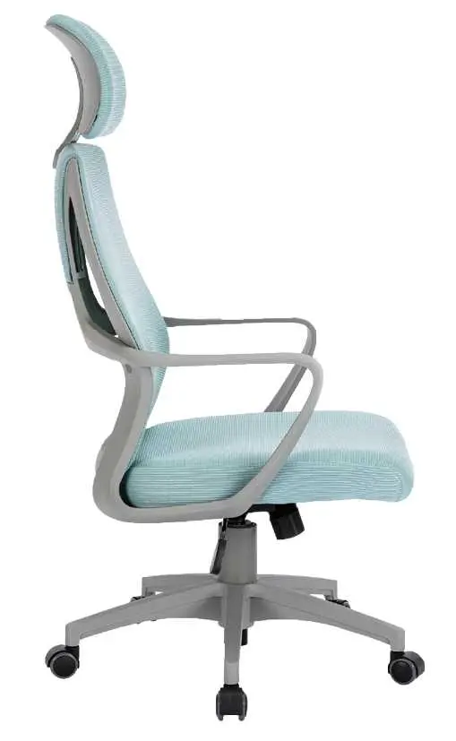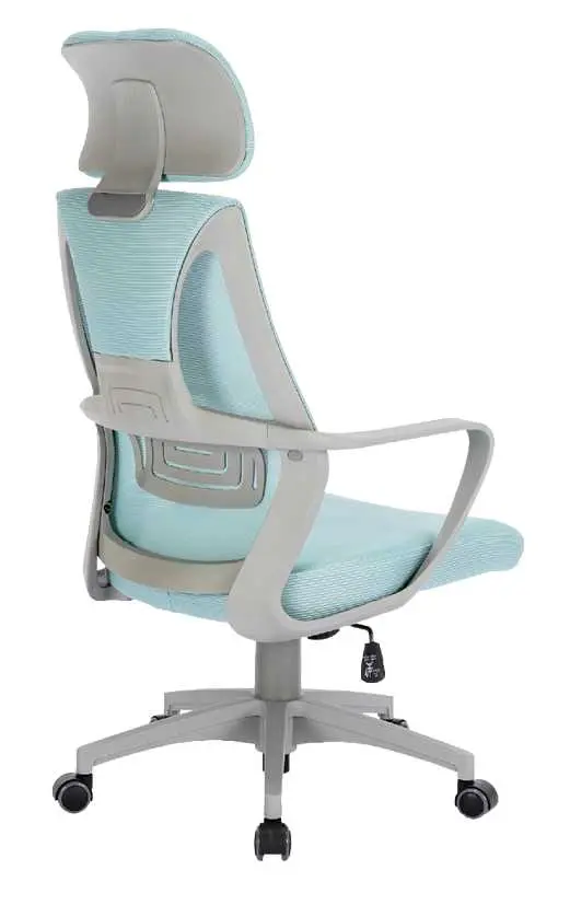 houpací mechanika s možností aretace v základní pozici, výškově nastavitelná opěrka hlavy, sedák s kvalitní pěnou čalouněný ve vzdušné látce, šedá záda