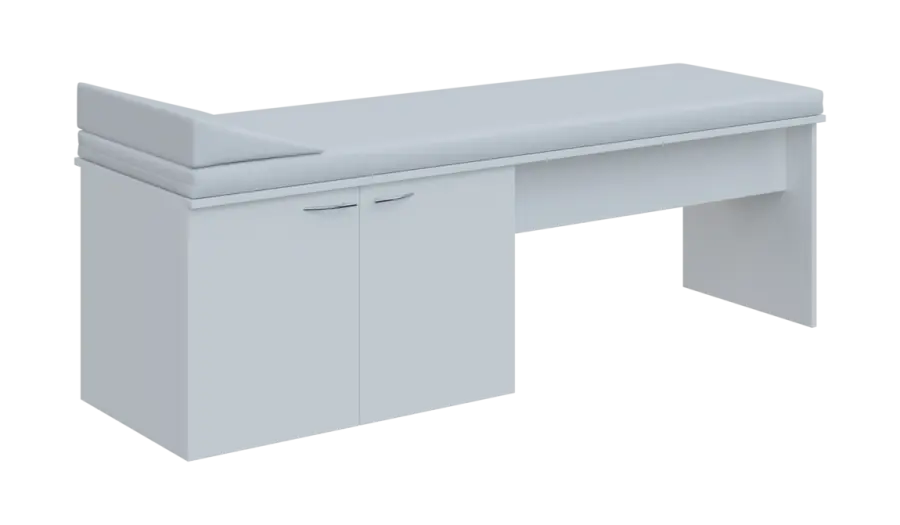 Laminové lehátko 2-dveřové, asymetrické chromové úchytky hodící se k podnožím nábytkové řady NEXT.