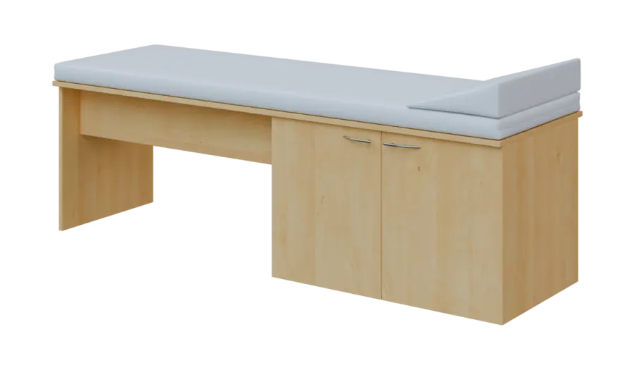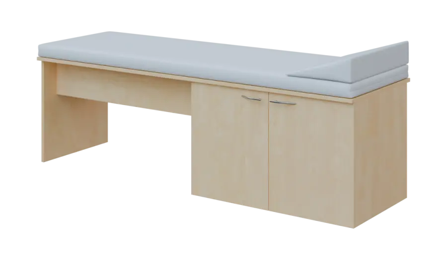 Laminové lehátko 2-dveřové, asymetrické chromové úchytky hodící se k podnožím nábytkové řady NEXT.