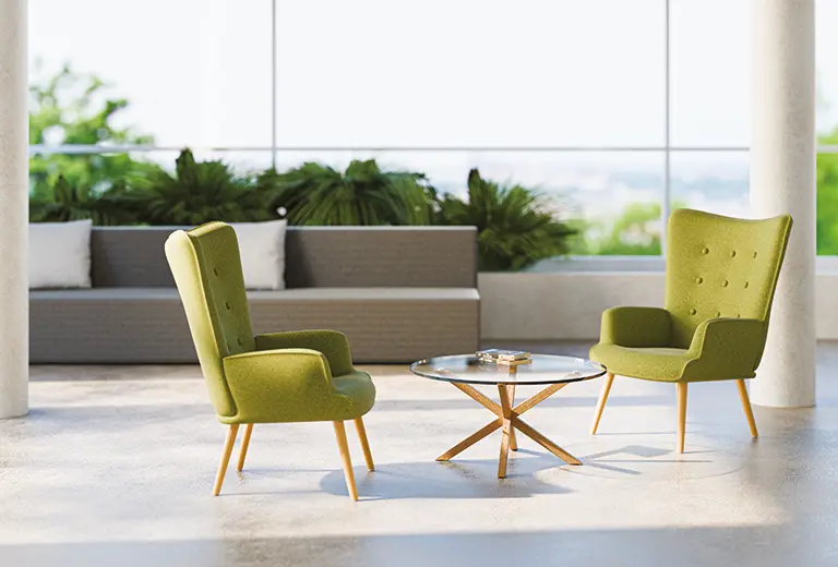 moderní klasické křeslo – ušák s vysokým opěrákem a tvarováním pro příjemné sezení, pevné a zaoblené područky poskytují podporu pro snadné vstávání