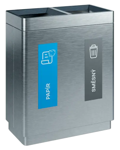 segmentové třídící koše kombinují funkčnost, estetický vzhled a odolné materiálové provedení, vnitřní nádoba z pozinkovaného plechu, třídící koše jsou dodávány spolu se sadou samolepek pro praktické označení dle požadovaného třídění