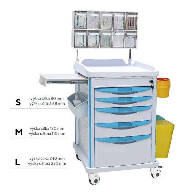 vozík s konstrukcí z hliníkových a plastových prvků, sloupky vyztužené ocelovým profilem