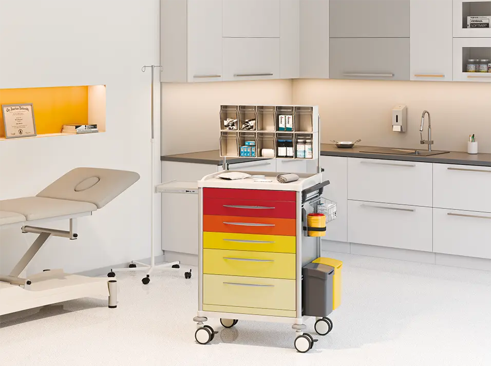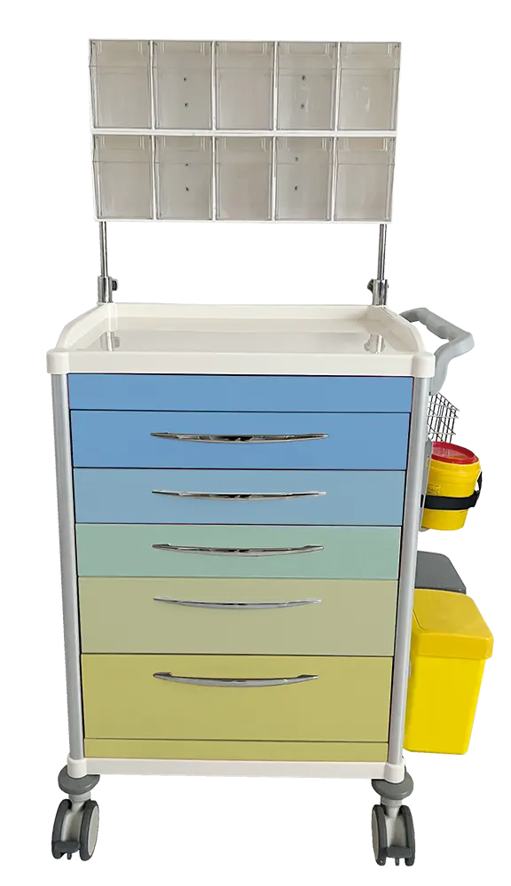 zdravotnický 5-zásuvkový vozík ze svařovaného hliníku, zásuvky opatřeny protiskluzovou podložkou