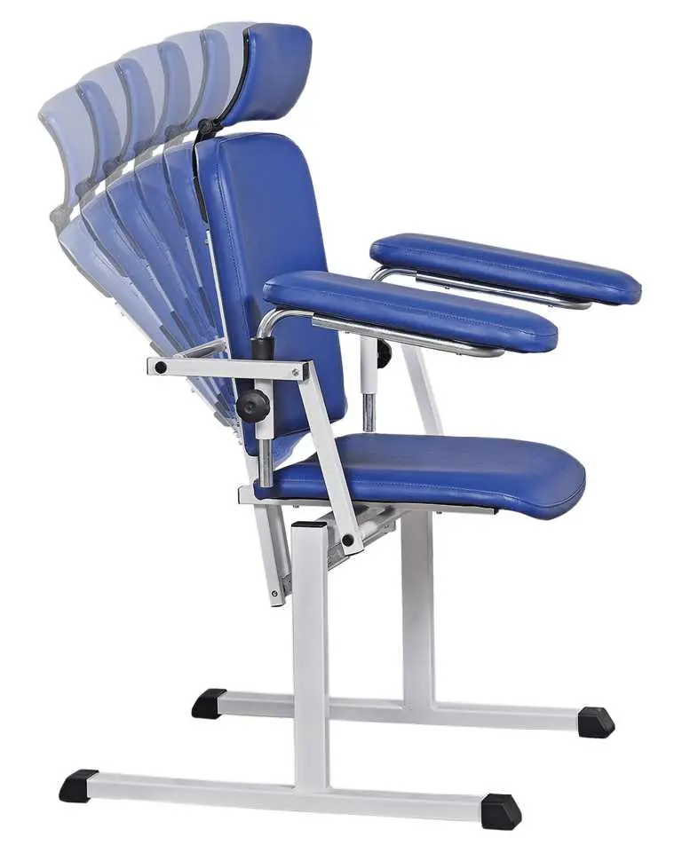 koženkou čalouněné odběrové křeslo s dvěmi výškově a úhlově polohovatelnými a odnímatelnými područkami