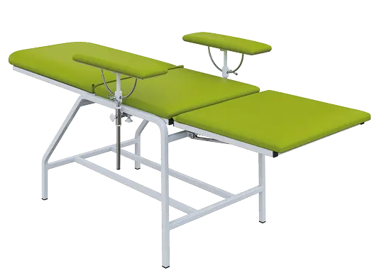 pohodlné křeslo pro odběr krve či dialýzy, stabilní kovové nohy opatřené bílou práškovou barvou, čalouněno koženkou