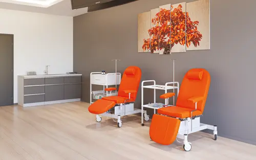 odběrové 3-motorové křeslo, polohovatelné a stavitelné, držák na příslušenství a infuzi