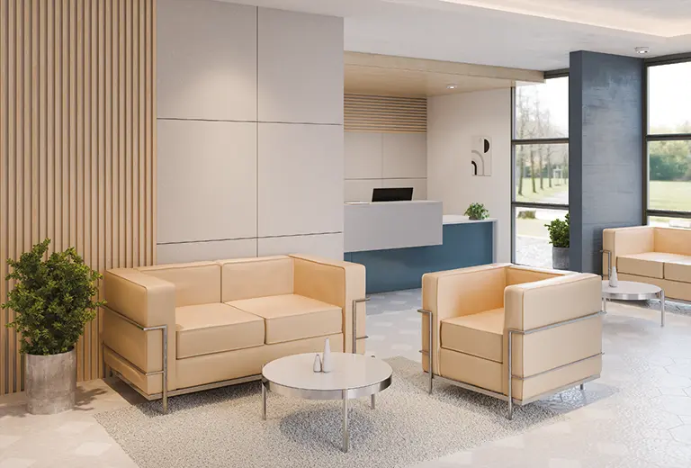 čalounění v kvalitní kožence, pevná designová kostra z nerezové oceli